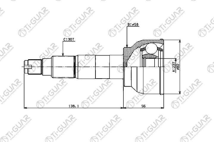 ШРУС наружный /передний левый /правый /TI-GUAR для Subaru Leone EA82; 23*58*30; TG-9106; (FU-006) FU006 23221GA232 23221GA233