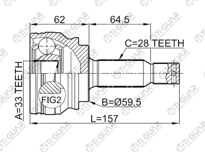 ШРУС наружный /внешний правый /левый /TI-GUAR для Mitsubishi Lancer 2007- Galant Fortis; 33*59.6*28; TG-7250; (MI-050) 2815A189 2815A190 3815A203